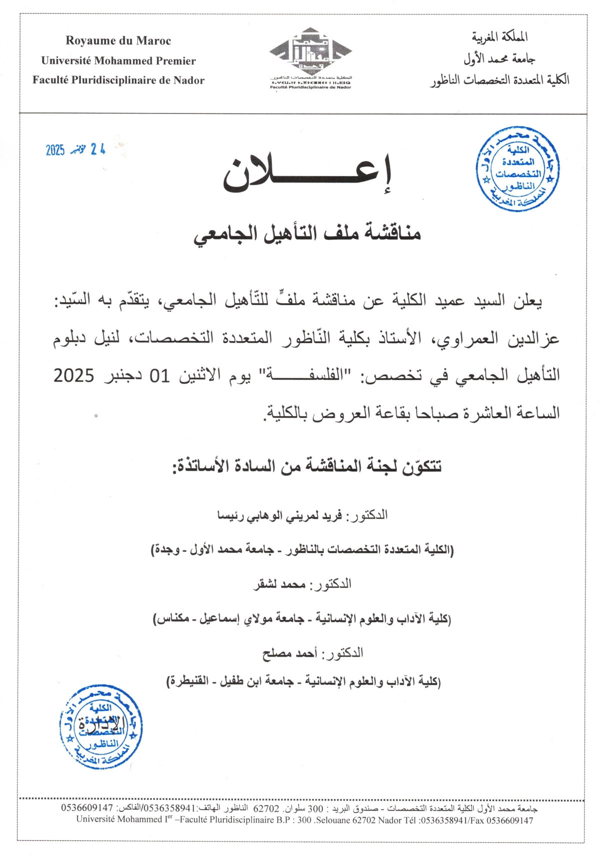 اعلان عن مناقشة ملف التأهيل الجامعي